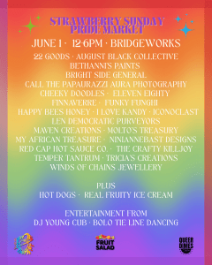PLUS if you attend Strawberry Sunday Pride market you’ll also get a discounted ticket for entry to Sonic Unyon’s Pride Kick-Off Party that night at Mill’s Hardware.
