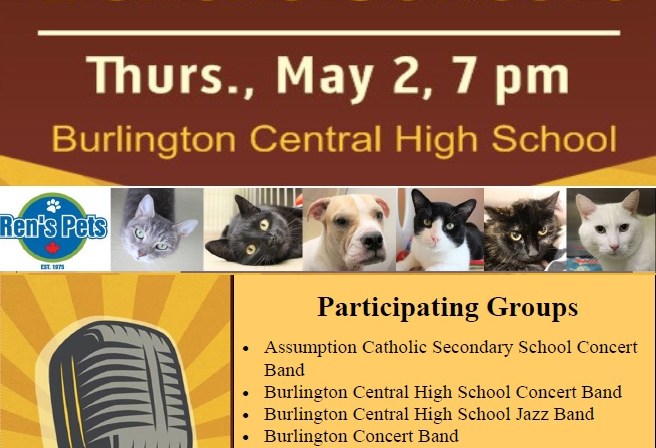 Burlington Central High School , 1433 Baldwin Avenue , Burlington The Burlington Humane Society is holding a benefit concert! The concert will take place on May 2 at 7 pm at Burlington Central High School (1433 Baldwin Avenue, Burlington). We have 5 groups performing their own selections and then at the end, musicians will come together to form a mass band and play the final […]