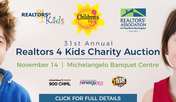 Michelangelo Events & Conference Centre, 1555 Upper Ottawa Street, Hamilton In the last 31 years, the REALTORS® Association of Hamilton Burlington, REALTORS® 4 Kids Charity Auction has raised over $1,150,000! Making the RAHB, Energy 95.3’s single largest contributor! Please join us for the 31st Annual, REALTORS® 4 Kids Charity Auction, on November 14th at Michelangelo Banquet Centre. All proceeds benefit the Children’s Fund. Your ticket includes a 4-course […]