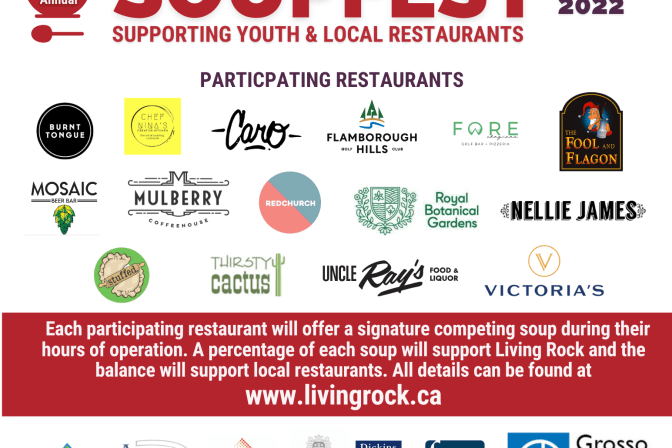 Hamilton Convention Centre, Hamilton, Ontario Soupfest is a community celebration where top quality area restaurants compete for Best Soup, Most Creative Soup, Best Display and the tastiest heart smart. Local celebrities and politicians come out to serve soup and help with the event. There is a Toonie Auction & live entertainment. Soupfest is also Living Rock’s largest fundraiser! DID YOU […]